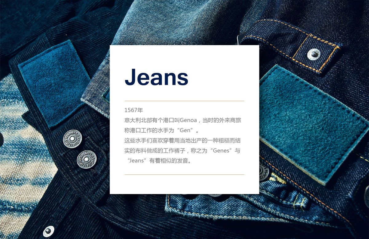 提到牛仔服飾的起源,自然要說到牛仔布的起源。牛仔布,即英文里的Denim。這個名稱的由來據說有些陰錯陽差。五百年前,哥倫布發現新大陸時,這種堅韌、實用的粗糙布料就已出現,當時主要用來制作船帆。因為此布原產于法國一個小鎮Nimes,因此以法文取名為“Serge De Nimes”。這種斜紋嗶嘰布料首次傳到英國時,英國商人很難發出法文“Serge De Nimes”這個音,因此就簡稱為Denim,即牛仔布,有時也音譯成丹寧。究竟這個由來是否真實可信,彼時的Denim是否就是此時的牛仔布,21世紀已經很難去證實了。但有一點應該可以肯定,十六、七世紀的歐洲,已經出現了斜紋組織的面料。而現代的牛仔布正是斜紋的面料。