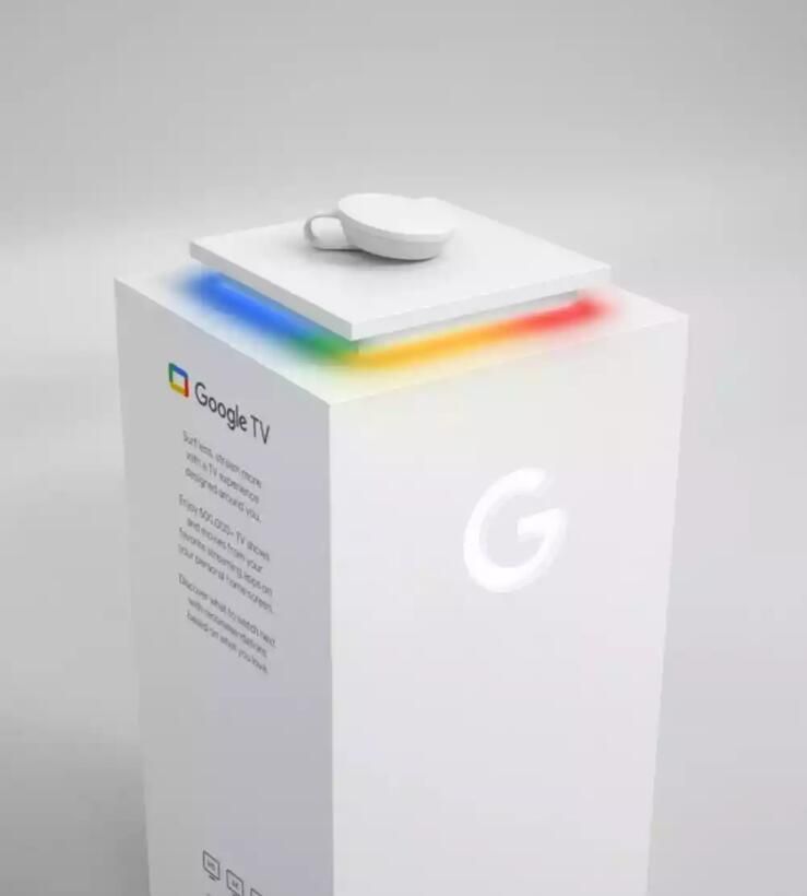 為了提升 Google TV 體驗的魔力,設計團隊還開發了會「發光」的動態系統,由四色融合的光環圍繞屏幕邊緣不斷循環,時明時暗,可以根據觀眾的心情或節目環境做出不同的色彩變化。