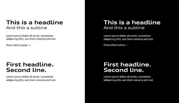 最后想提一點的是,奧迪專門推出了品牌形象指南專題網站,而且還公開提供定制字體 「Audi Type」的字體文件下載。當然未經授權,不可商用。