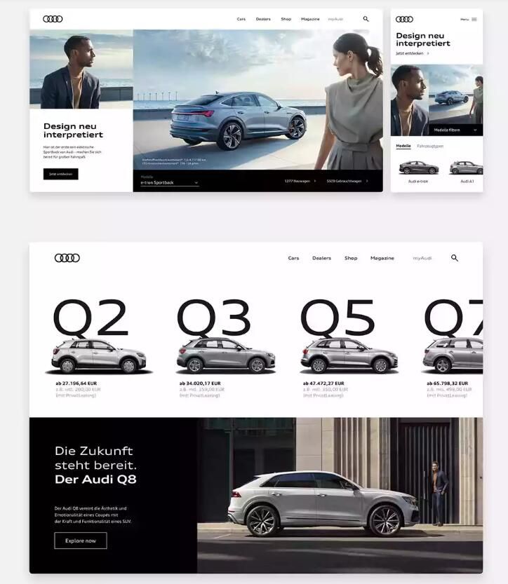 如果你最近有注意到奧迪在線上各個平臺推出的營銷廣告,你應該會發現奧迪的四環車標變細了! 其實這一變化早在去年就已經逐步開始,為進一步完善該品牌在全球的品牌戰略需求,來自德國柏林的設計機構 Strichpunkt 與奧迪合作,為奧迪定制了一套全新的視覺系統。其中一個關鍵特征是,奧迪的四環標將會變得更加靈活。