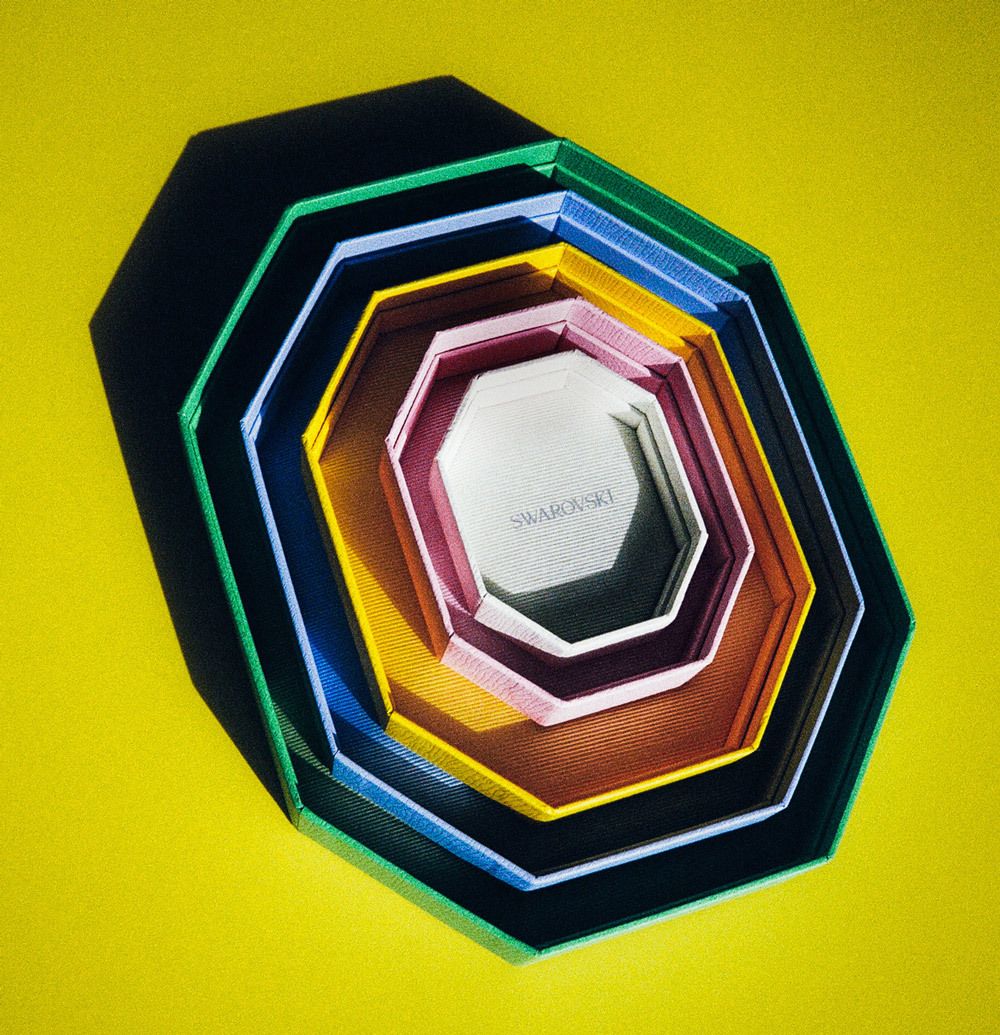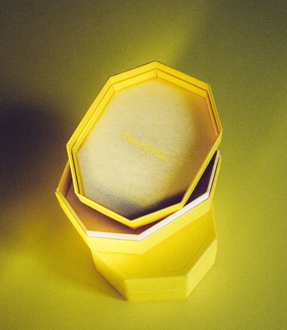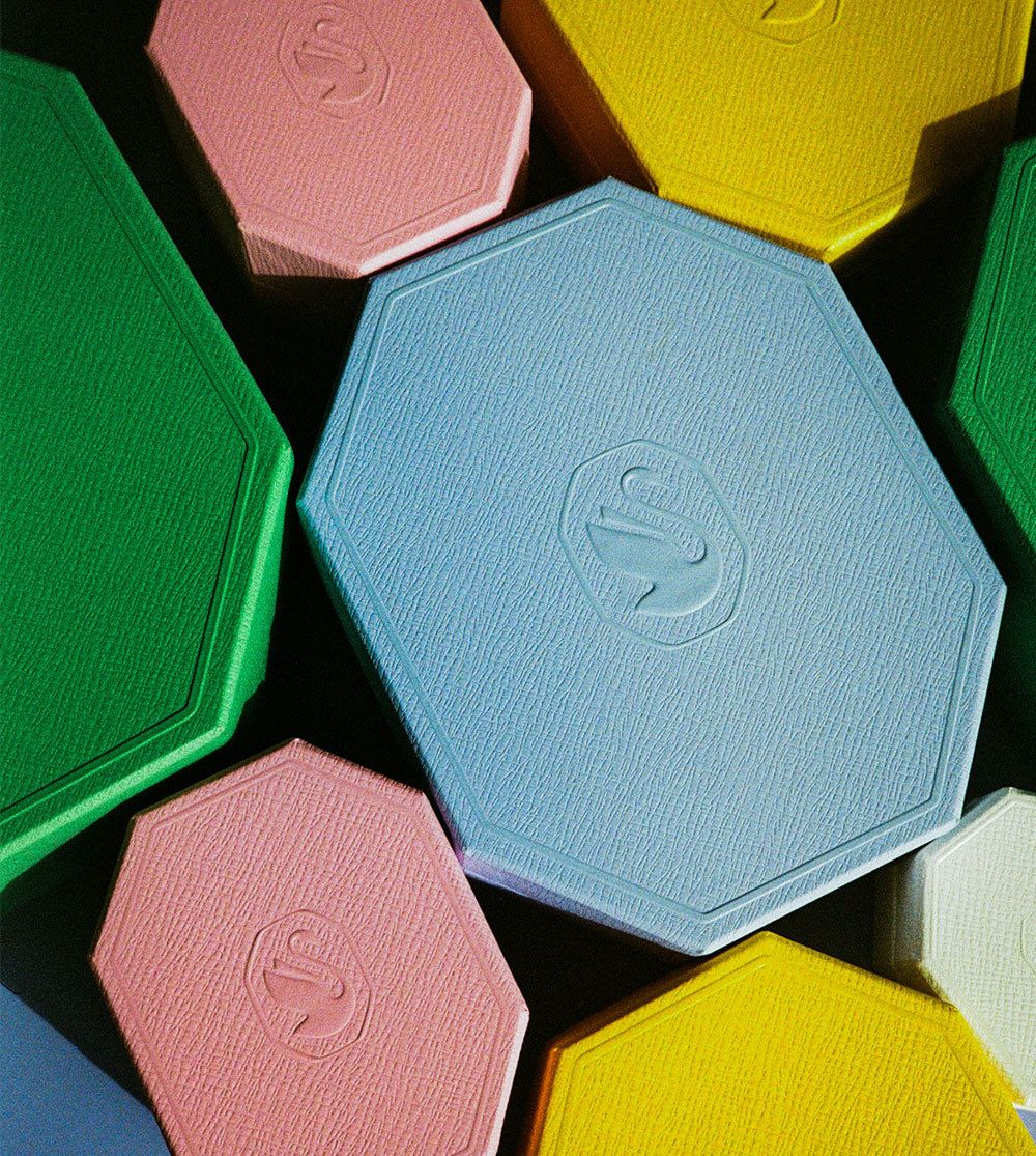 五彩繽紛的包裝盒也繼承了新LOGO最顯著的八邊形造型,盒子的外部是八邊形包裹的天鵝圖標,里襯則是新的字標。看起來更加昂貴奢華。